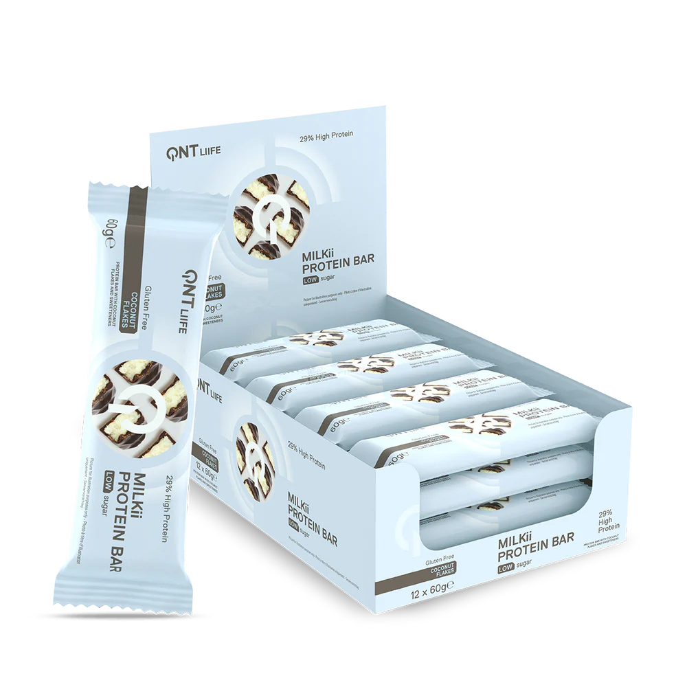 لوح بروتين ميلكي مع رقائق جوز الهند قليل السكر ٦٠ جرام، المكونات: محلي: E965(ii)، مزيج البروتين 30% (بروتين الحليب (حليب)، مركز بروتين مصل الحليب (حليب))، طلاء الكاكاو بالحليب 20% (محلي: E965(i)، دهن النخيل المهدرج بالكامل، مسحوق الكاكاو منخفض الدسم، مسحوق مصل الحليب (حليب)، مسحوق الحليب منزوع الدسم، مستحلب: ليسيثين بذور اللفت)، زيت جوز الهند، محلي: E420(i)، رقائق جوز الهند 4%، عامل مرطب: E422، منكهات طبيعية، ملح.